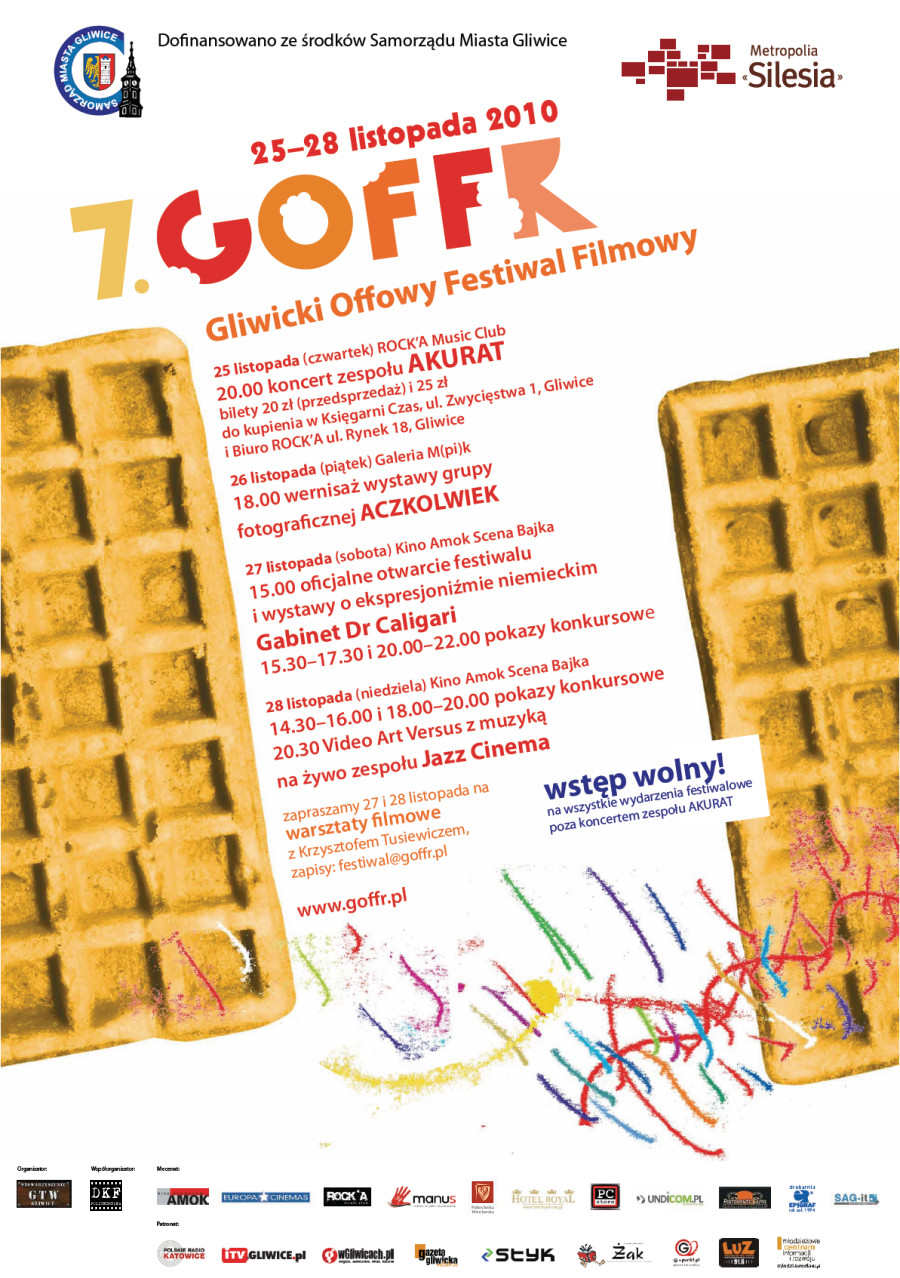 Kontynuując sześcioletnią tradycję Gliwickiego Offowego Festiwalu Filmowego GOFFR, gliwickie Stowarzyszenie GTW wraz z wrocławskim Dyskusyjnym Klubem Filmowym Politechnika pragnie przygotować tegoroczną edycję festiwalu z rozmachem odpowiednim dla tego wieloletniego wydarzenia kulturalnego. Celem i misją festiwalu jest: stworzenie platformy pomiędzy fotografią i filmem, promocja kina niezależnego, stworzenie miejsca dyskusji pomiędzy uczestnikami festiwalu a cenionymi przedstawicielami świata filmowego, łączenie gatunków czyli filmu fotografii i muzyki.