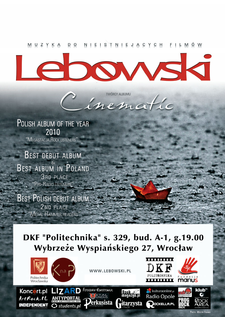 Już 16 listopada polski zespół Lebowski w ramach trasy koncertowej promującej ich debiutancki album „Cinematic” wystąpi w Dyskusyjnym Klubie Filmowym „Politechnika” na Politechnice Wrocławskiej.