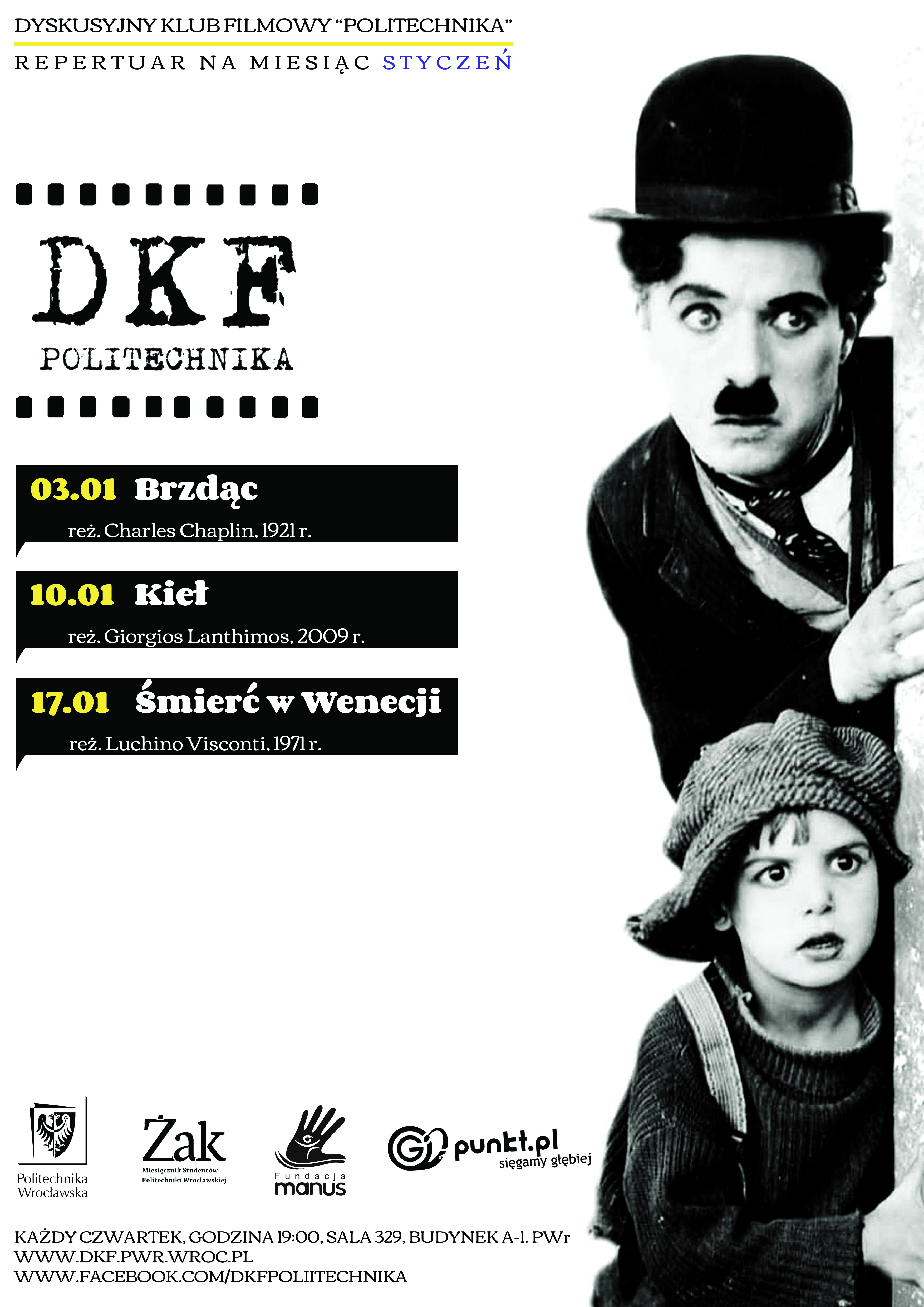 Repertuar na miesiąc styczeń przyszłego roku już dostępny. Tym razem tylko trzy filmy ale za to jakże dobre. Mamy nadzieję, że wybór zaowocuje pełną salą i wspólną dyskusją. Styczniowe spotkania z Dyskusyjnym Klubem Filmowym „Politechnika” promuje poniższy plakat: