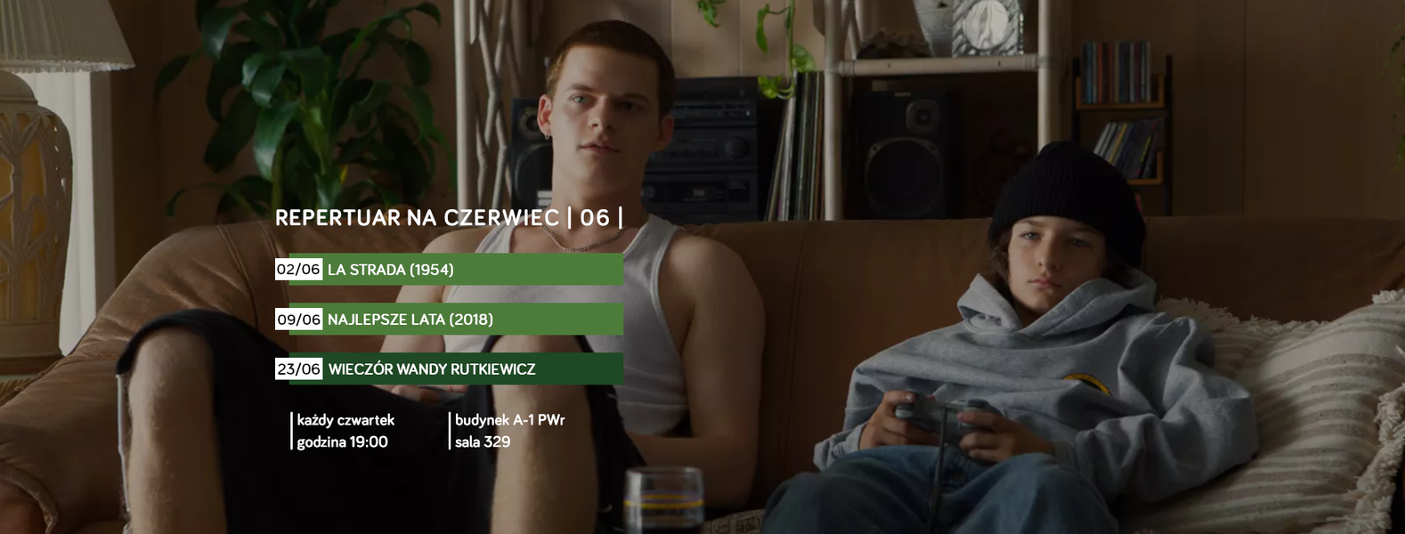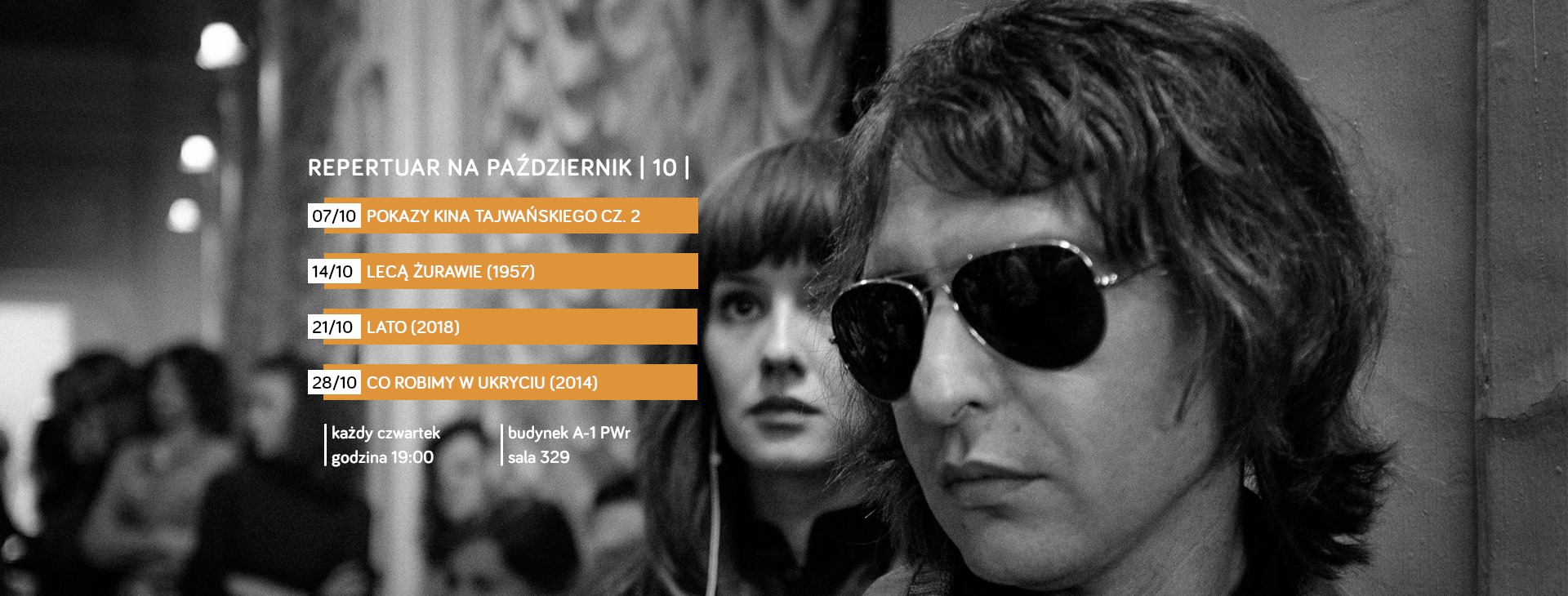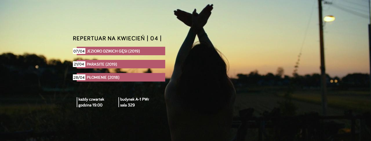 W związku z działaniami profilaktycznymi przeciw wirusowi SARS-CoV-2 podjętymi przez Politechnikę Wrocławską, wszystkie czwartkowe pokazy w sali 329 są odwołane do 22 marca.