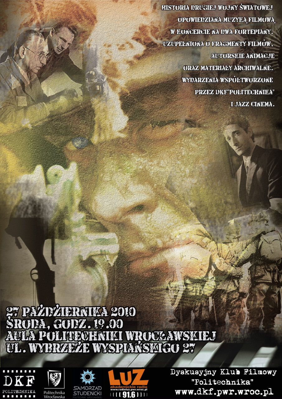 Historia Drugiej Wojny Światowej opowiedziana muzyką filmową, projekt aranżujący kilkanaście znanych i mniej znanych motywów muzyki filmowej w koncercie na dwa fortepiany. Cała opowieść będzie uzupełniona o formę wideo, w której zobaczymy fragmenty filmów i autorskie animacje oraz materiały archiwalne. Wydarzenia współtworzone przez DKF „Politechnika” i Jazz Cinema.
